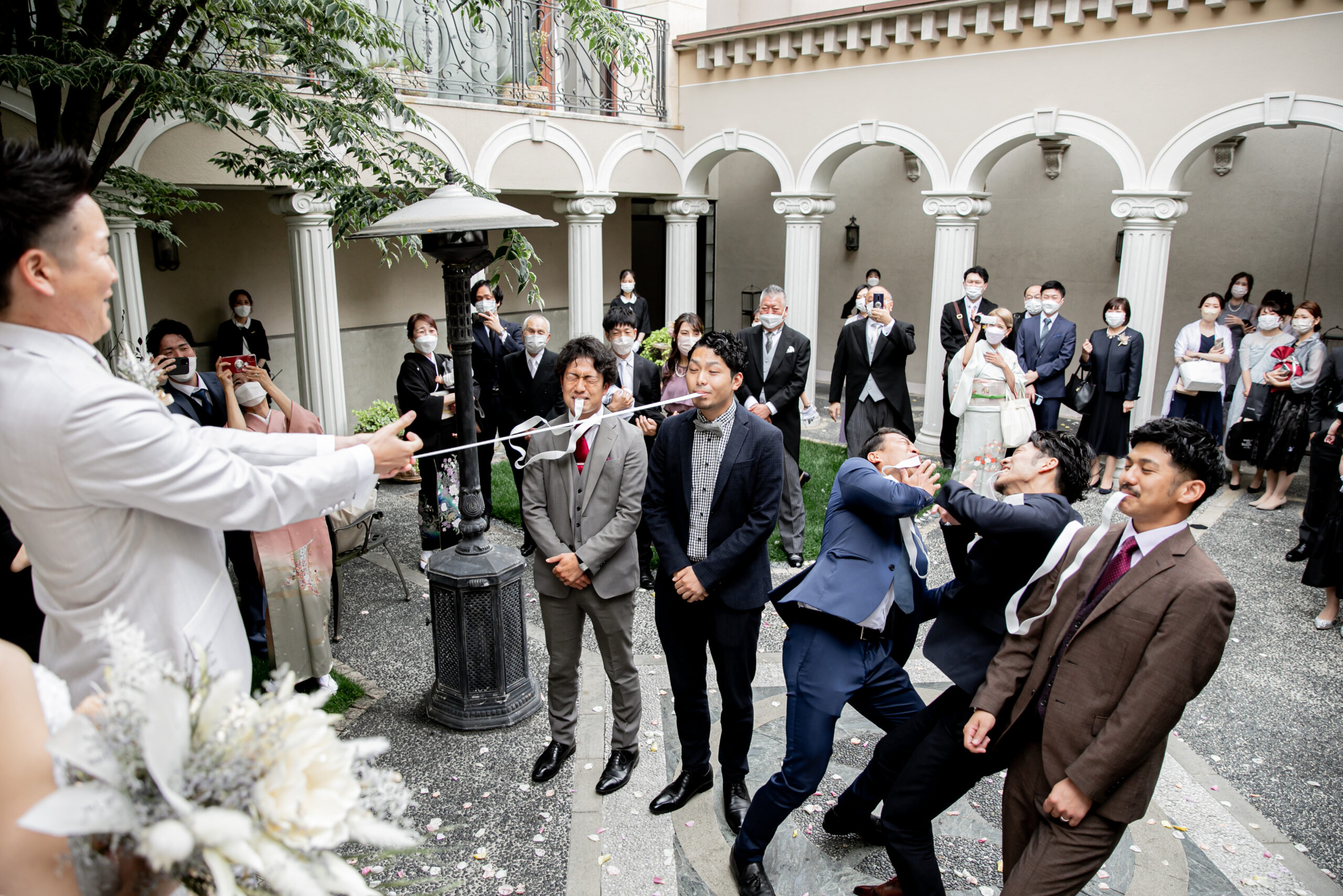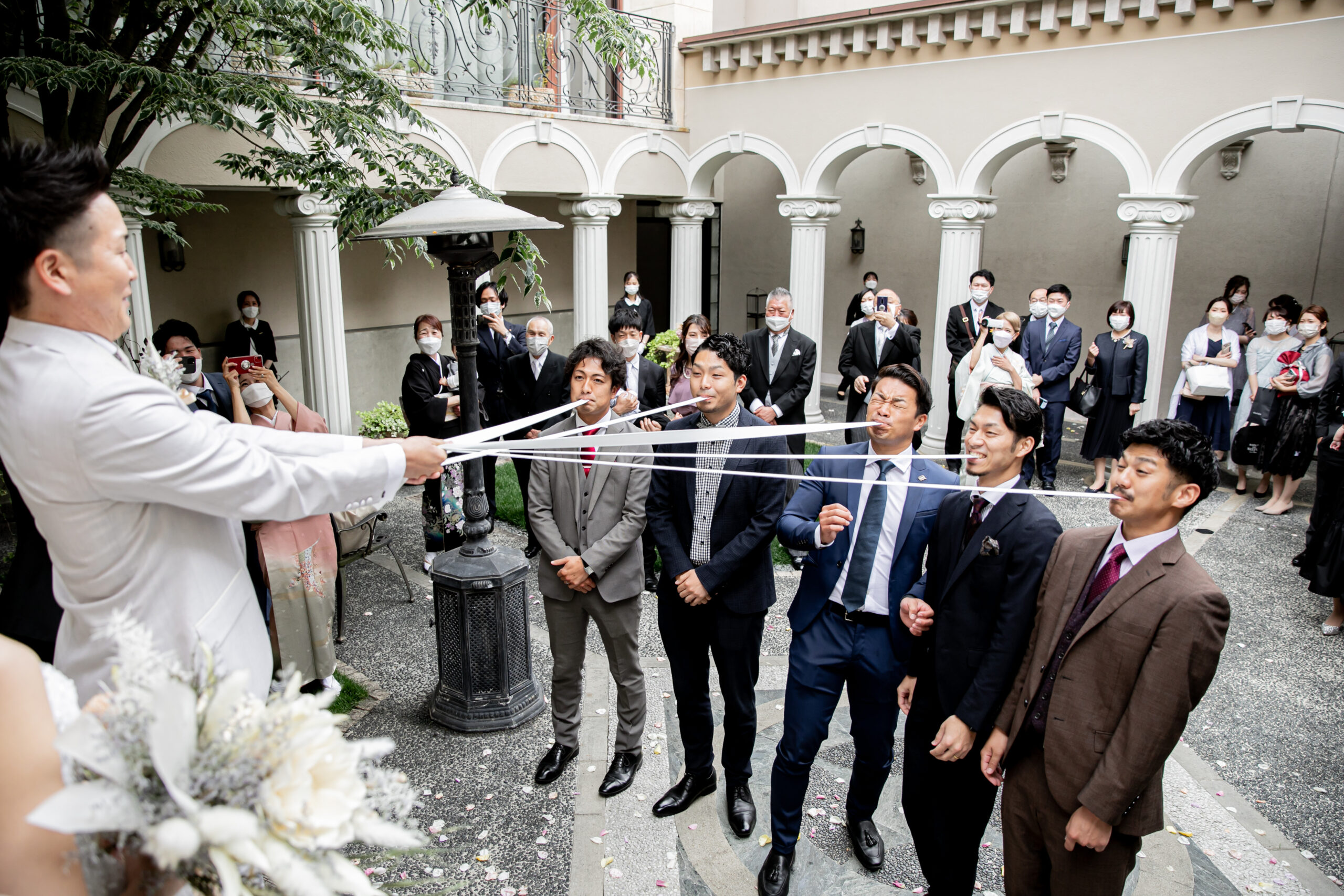 ブーケプルズの男性版とも呼ばれるゴムパッチンプルズでは、ゴムがお顔に飛んでこられなかったお客様が当たりとなり、