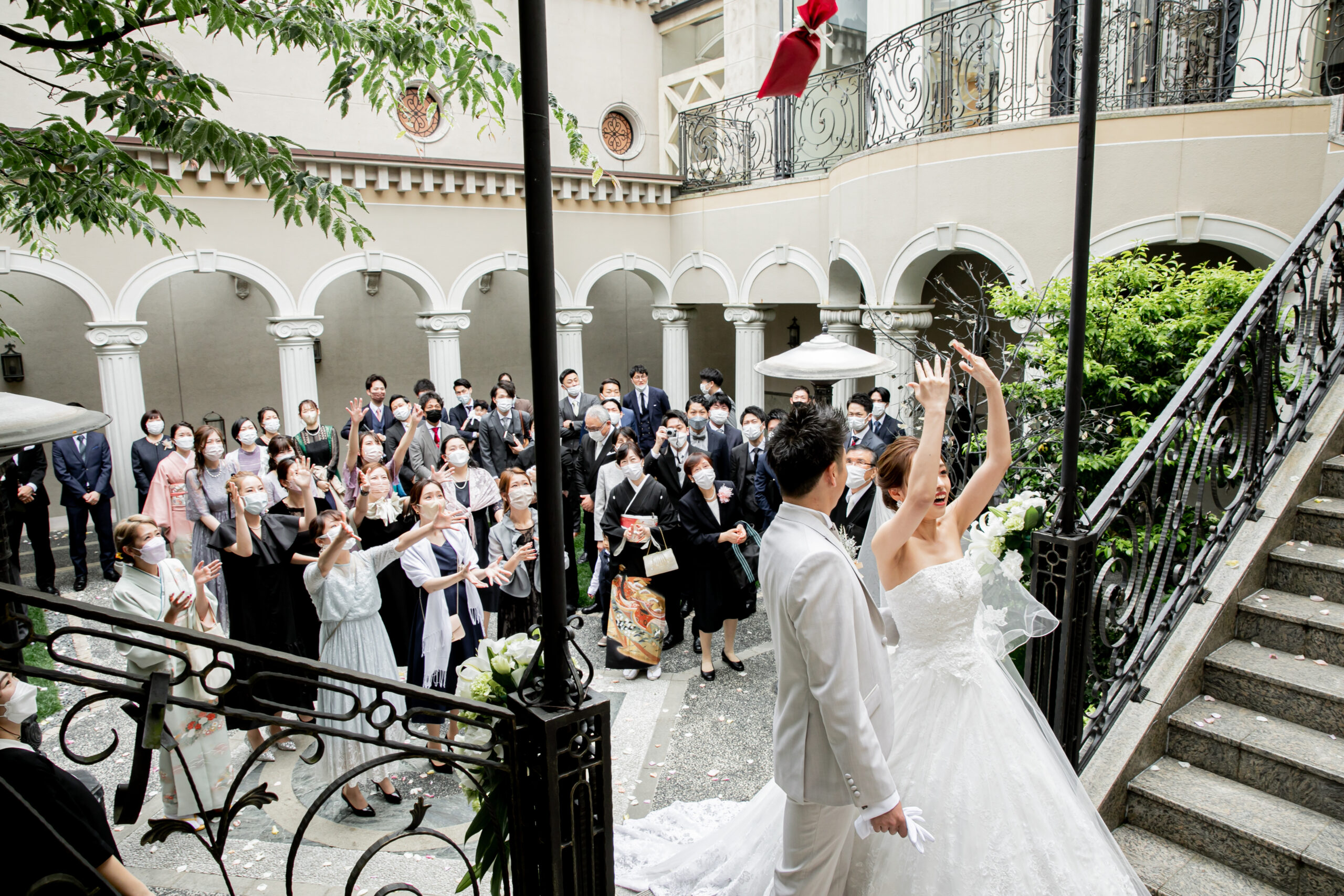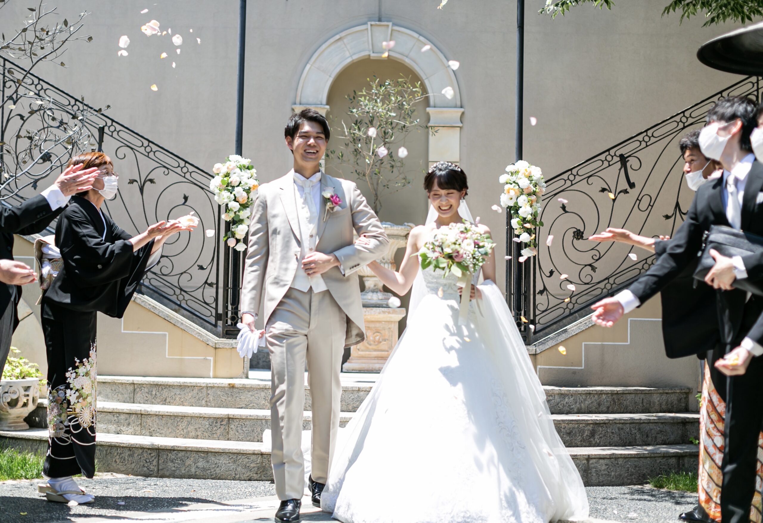 ゲストの皆様には花道をお作りいただき、おふたりにお花をお投げかけいただきます。